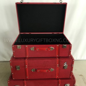 Red Fabric Patent Suitcase Trunk